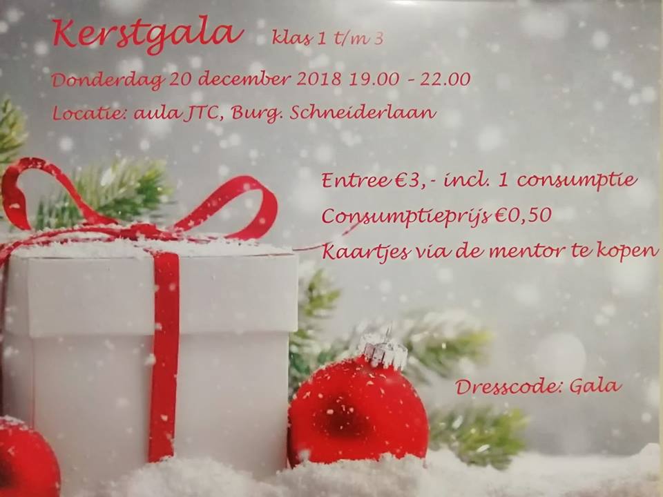 Het entreebewijs voor het galabal is op school nog te koop t/m vrijdag 14 december bij je mentor. Aan de deur kun je geen kaarten kopen. Let op: Je entreebewijs is alleen geldig in combinatie met je schoolpas 2018-2019…neem die dus mee!!