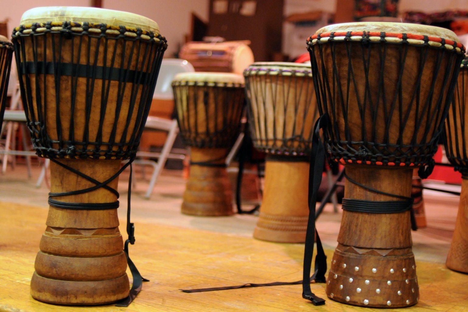 De leerlingen krijgen 3 verschillende workshops aangeboden: djembé, percussie en Afrikaanse dans.