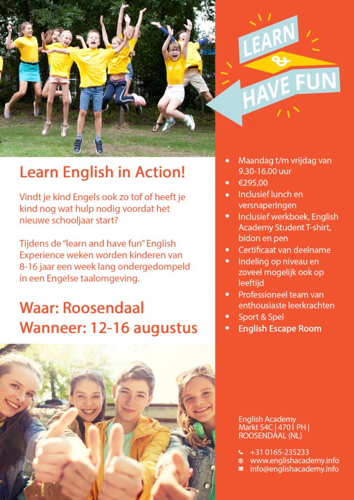 Ook dit jaar organiseren we weer een English Experience Week in de laatste week van de zomervakantie (12-16 augustus).