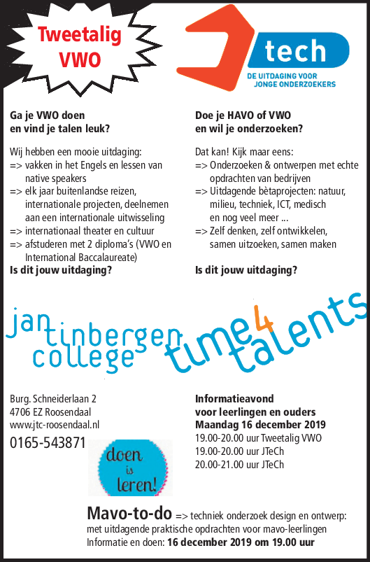 16/12: info-avond TweetaligVWO, JTeCh en MavoToDo