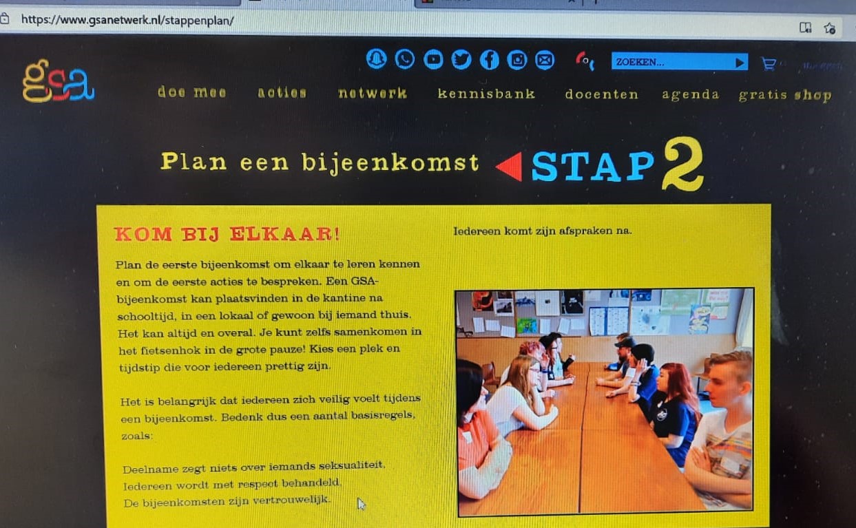 GSA staat voor 'gender and sexuality alliance'. Het is een leerlingenwerkgroep die binnen school met aanwezigheid, activiteiten en communicatie ondersteuning wil bieden omdat zij diversiteit en veiligheid op het JTC erg belangrijk vinden. De 16 (!) bij deze online sessie aanwezige leerlingen gaan zorgen voor een klankbord en ontmoetingsplek voor alle JTC-ers. Ze zijn daarnaast bij organisatie en uitvoering van allerlei activiteiten betrokken.