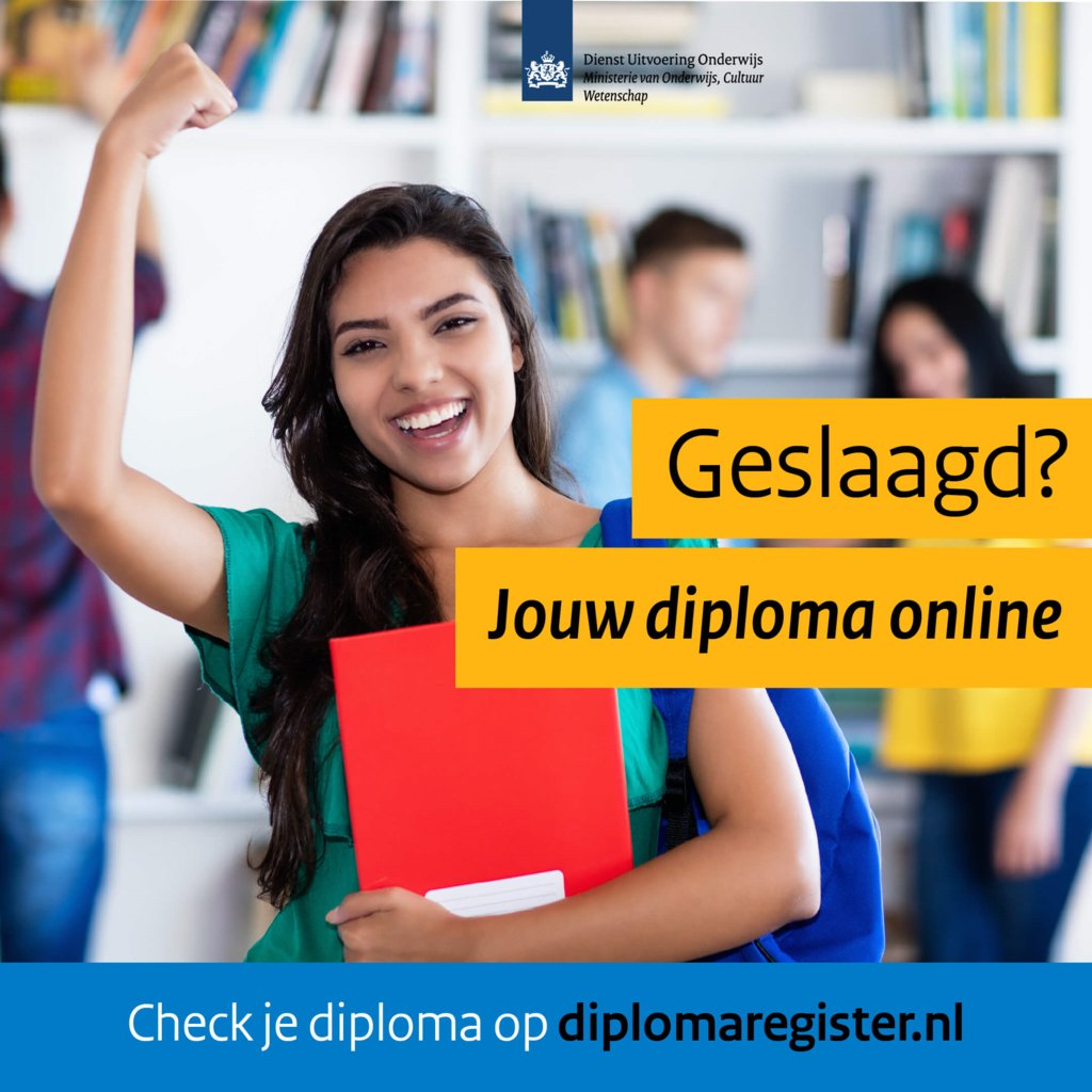 Er is een goede oplossing: een digitaal uittreksel uit het diplomaregister heeft dezelfde waarde als een origineel diploma. Het is een geldig bewijsstuk bij verlies of bij diefstal van je oorspronkelijke diploma. Je kunt het ook gebruiken bij sollicitaties en aanmeldingen voor vervolgopleidingen. Kijk voor meer informatie op www.diplomaregister.nl